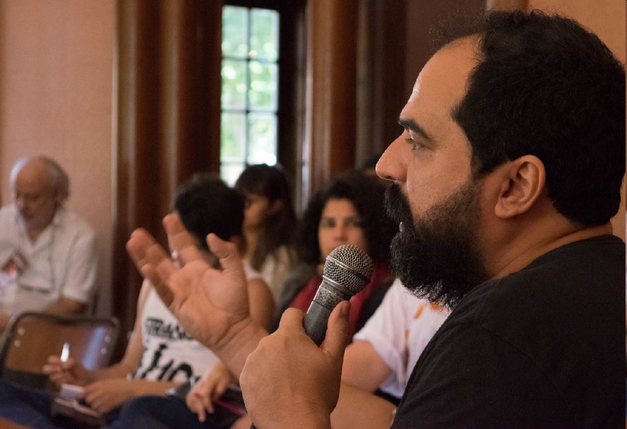 Neste primeiro painel do encontro (“Experiências de comunicação comunitária na América Latina”), no Cine-Arte da Universidade Federal Fluminense (UFF), estavam presentes os brasileiros André Fernandes (ANF) e Renata Machado (Rádio Yandê), o argentino Eduardo Balán (El Culebrón Timbal), o colombiano Jairo Castrillón Roldán (Corporación Semiósfera), o equatoriano Isaac Peñaherrera (Red CVC Ecuador) e a uruguaia Milagros Lorier (Árbol TV/ Red CVC Uruguay).