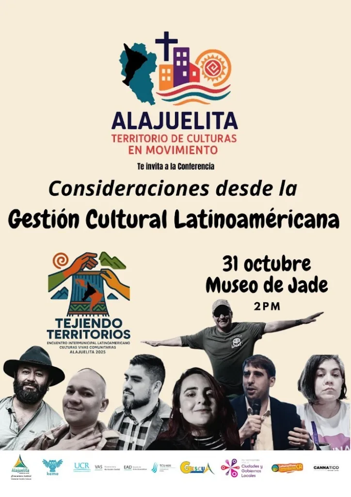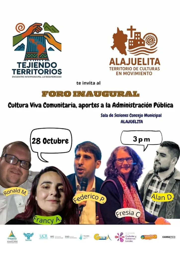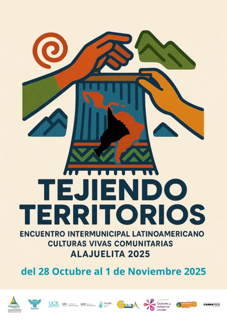 Alajuelita, em Costa Rica, se torna nesta semana um ponto de encontro para o diálogo cultural e territorial latino-americano. De 28 a 31 de outubro, acontece o Encuentro Intermunicipal Latinoamericano “Tejiendo Territorios”, uma jornada que reúne gestores culturais, representantes de governos locais e organizações comunitárias para tecer agendas comuns e fortalecer políticas culturais com base nos saberes dos territórios.