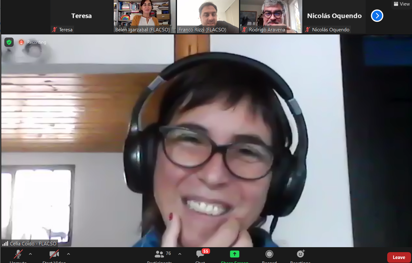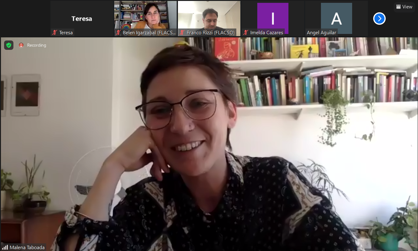 Além de apresentar a equipe da FLACSO que acompanhará os alunos e alunas até dezembro (os coordenadores acadêmicos, as tutoras Célia Coido e Cecilia Salguero, e a responsável pela assistência técnica, Malena Taboada), esta reunião por videoconferência serviu para divulgar os conteúdos, as ferramentas disponíveis e a organização do curso (aulas publicadas às quintas-feiras, fóruns de intercâmbio disponíveis às sextas-feiras, trabalhos parciais e finais, etc).