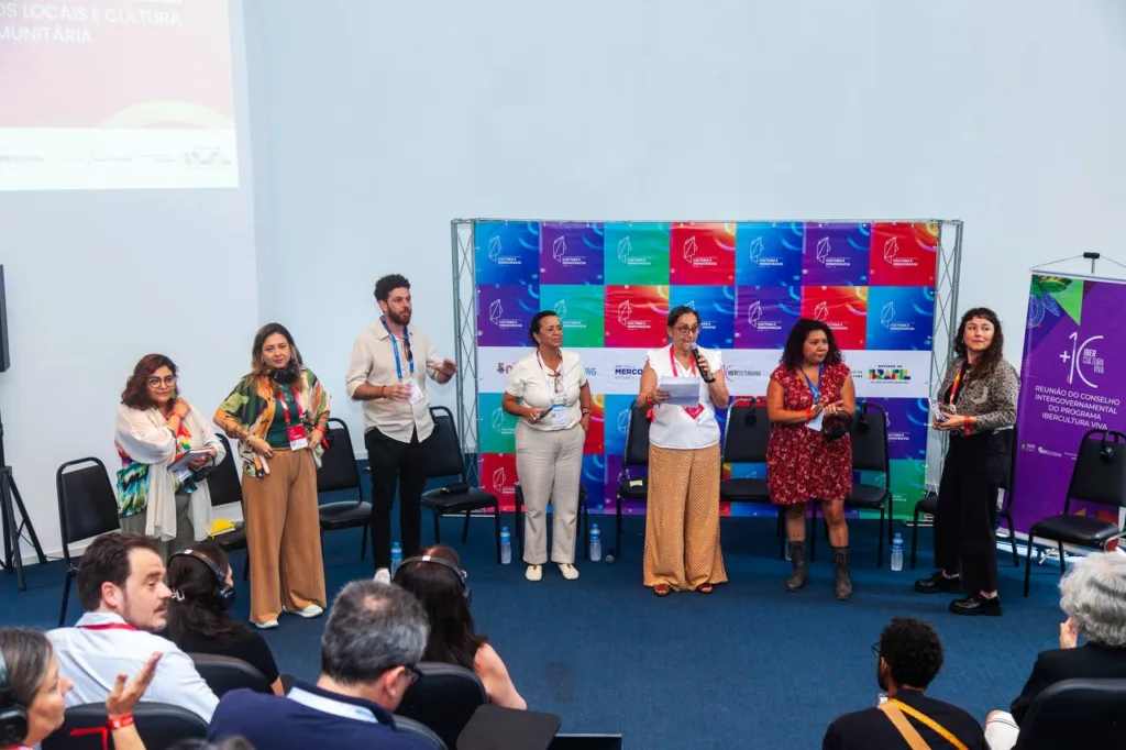 Na mesa Conectando experiências: governos locais e cultura viva comunitária, realizada no II Seminário Internacional “Cultura y Democracia: América Latina por los Derechos Culturales”, no marco da 30ª Cúpula de Mercocidades, a Rede IberCultura Viva de Cidades e Governos Locais apresentou um mosaico de iniciativas que expressam o vigor das políticas culturais de base comunitária na região. Sob mediação da professora Lia Calabre, as cidades convidadas compartilharam perspectivas que convergem em princípios de participação, direitos culturais e construção democrática.