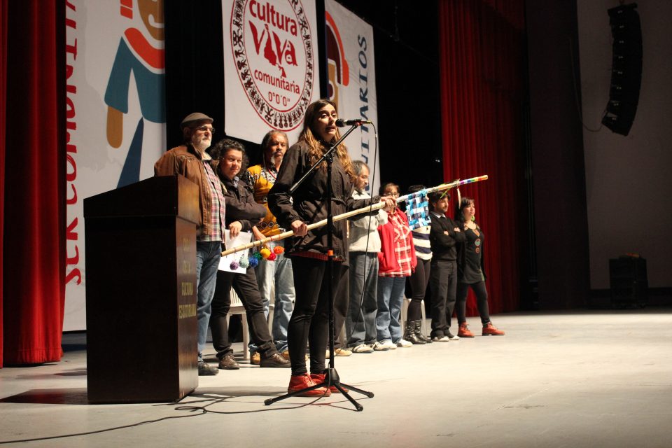 Os primeiros convidados estavam no roteiro deste ato que seguiu à abertura oficial do 3º Congresso Latino-americano de Cultura Viva Comunitária. Os brasileiros Célio Turino e Aderbal Ashogun Moreira falariam sobre a ideia de cultura viva e da Cúpula dos Povos que se deu na Rio+20; o colombiano Jorge Blandón representaria Medellín, a primeira cidade a ter uma política de cultura viva comunitária; os bolivianos Iván Nogales e Mario Rodríguez seriam referências à Caravana por la Vida e o 1º Congresso Latino-americano de CVC; a salvadorenha Marlen Argueta comentaria o 2º Congresso Latino-americano de CVC; o argentino Diego Benhabib falaria da criação do programa IberCultura Viva… E assim foi, mas muito mais gente quis subir ao palco e se ver também como personagem desta história. No final, havai mais de uma centena de pessoas sorrindo para as fotos.