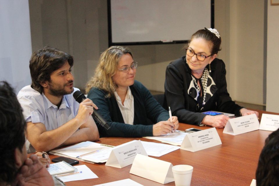 A vice-ministra de Cultura e Patrimônio do Equador, Andrea Nina, deu início à reunião falando da importância do fortalecimento da cultura comunitária em um país diverso como o Equador, “que tem desenvolvido espaços culturais comunitários muito importantes” com o trabalho cidadão, para além das gestões de governos. “Para nós, é importante aprender com as experiências que vêm sendo desenvolvidas em outros países. A cooperação técnica nos permite aprender com os erros e os acertos”, comentou.