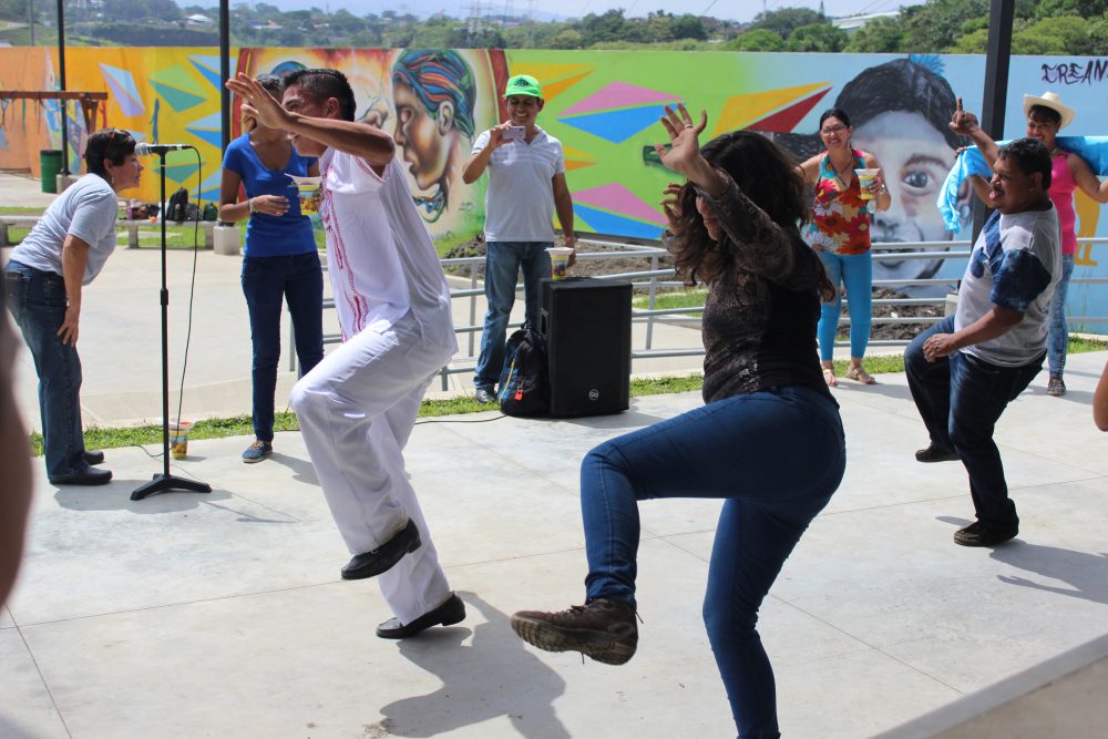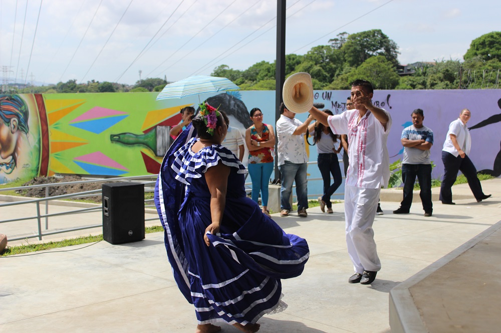 E foi por esta grande conquista comunitária que começou a excursão “Carpio Cultural”, uma das visitas a comunidades programadas para o segundo dia da 4a Reunião Intergovernamental do programa IberCultura Viva em San José, Costa Rica. Três grupos se dividiram na manhã de quarta-feira, 8 de junho, cada um rumo a um destino: La Carpio, Heredia e Purral de Goicoechea. Os que se dirigiram a La Carpio foram recebidos com o baile folclórico do grupo Cosibolka e os jogos tradicionais dos jovens do projeto “Aprende a brincar”, apoiado pelo programa Becas Taller, da Direção de Cultura do Ministério de Cultura e Juventude de Costa Rica.
