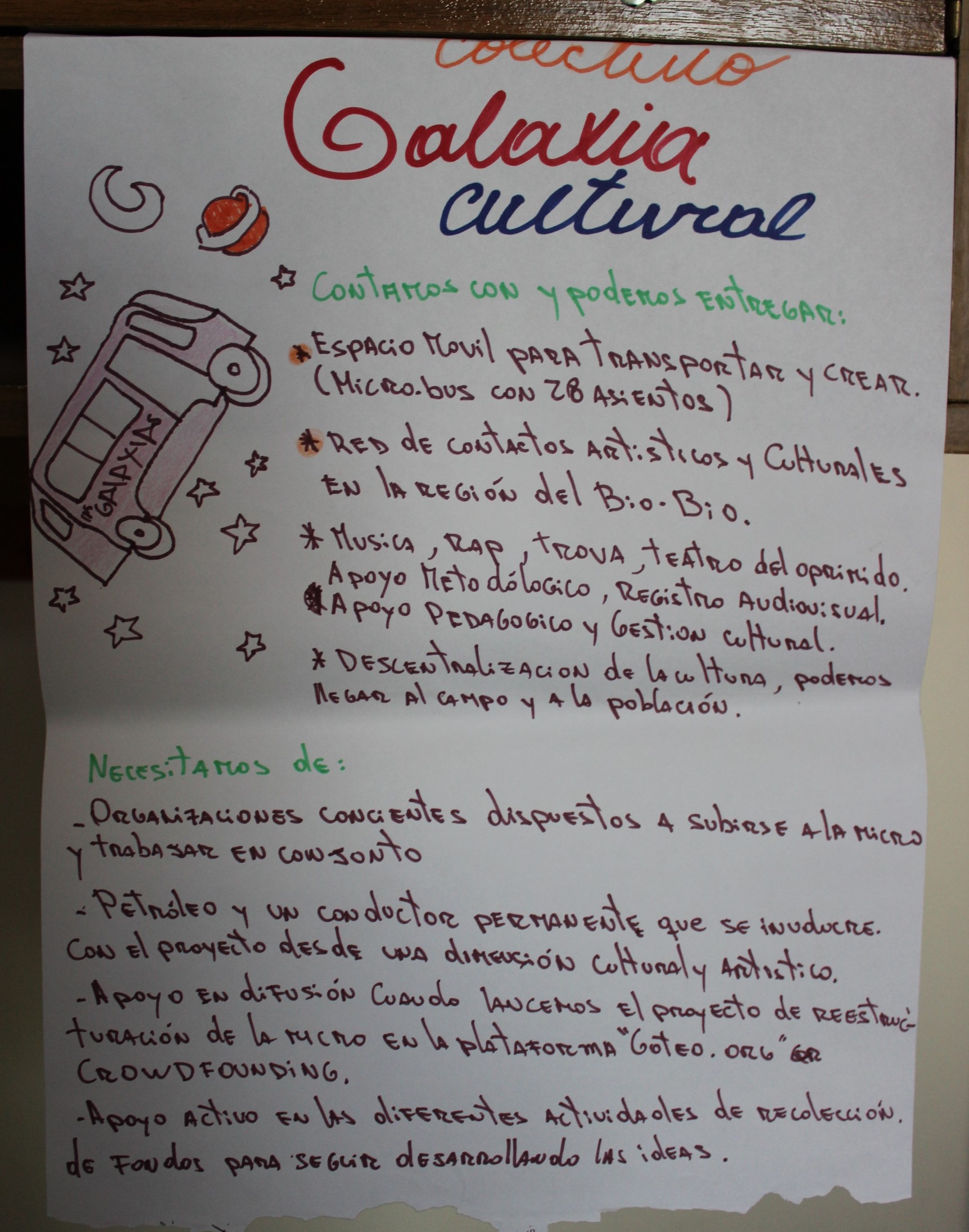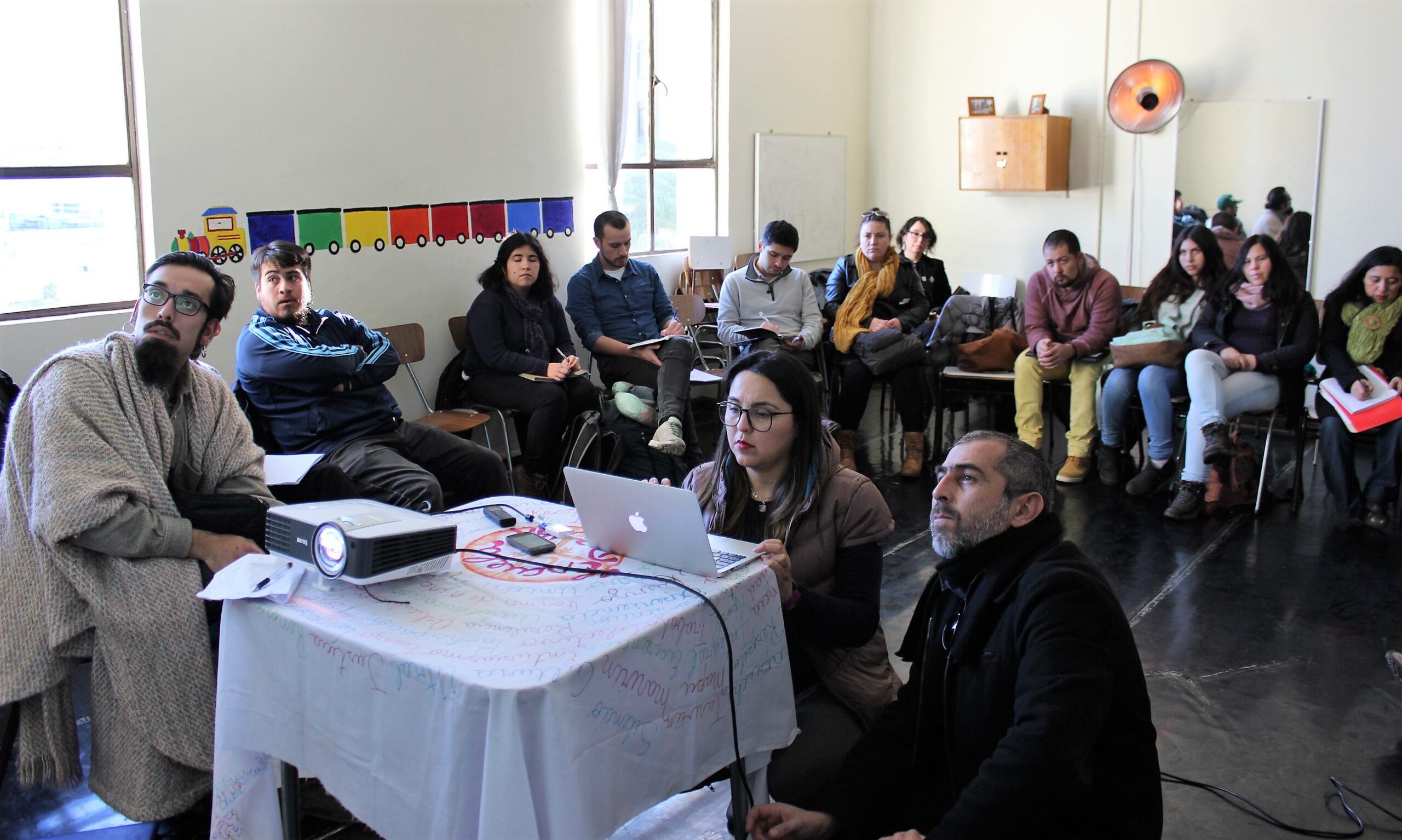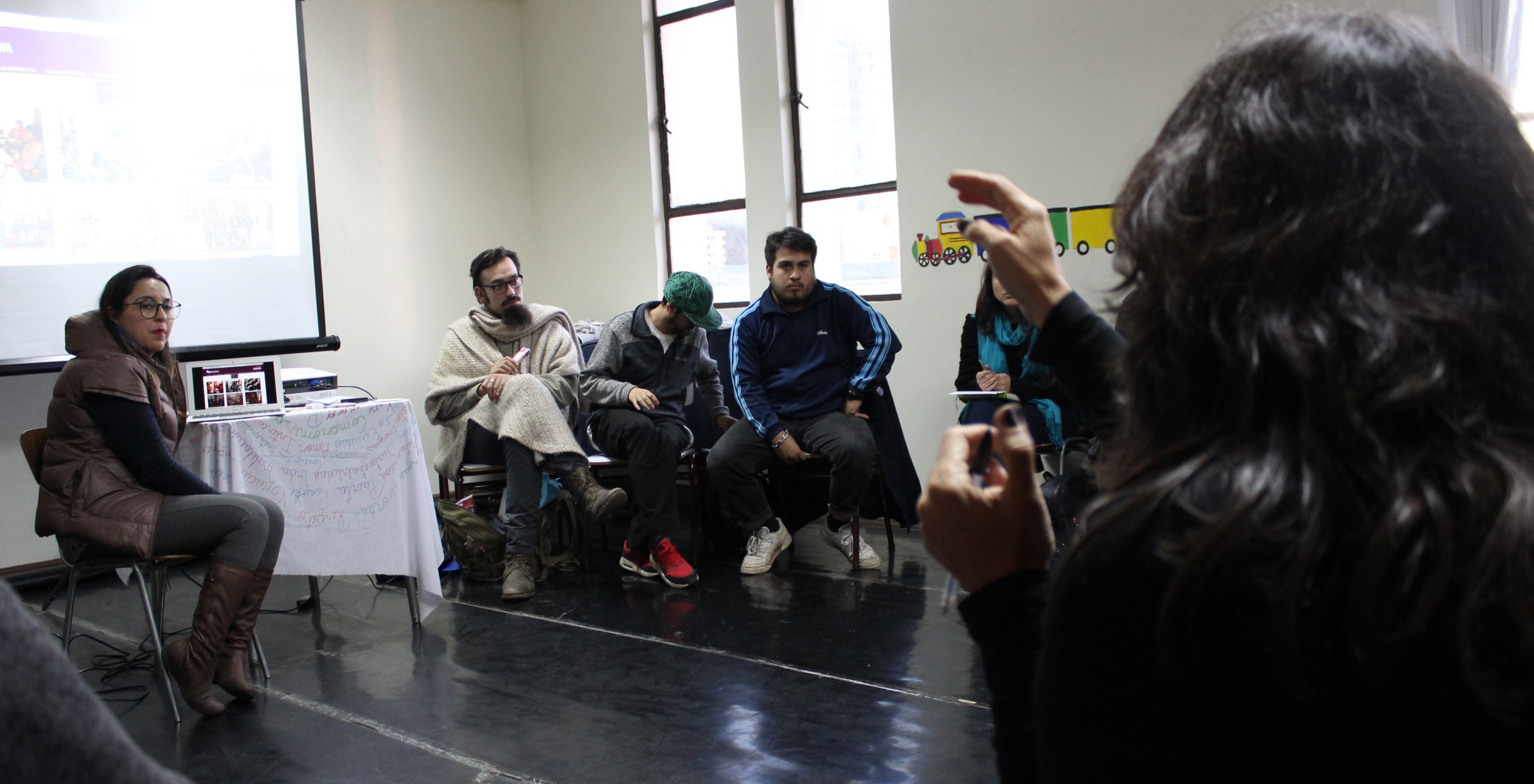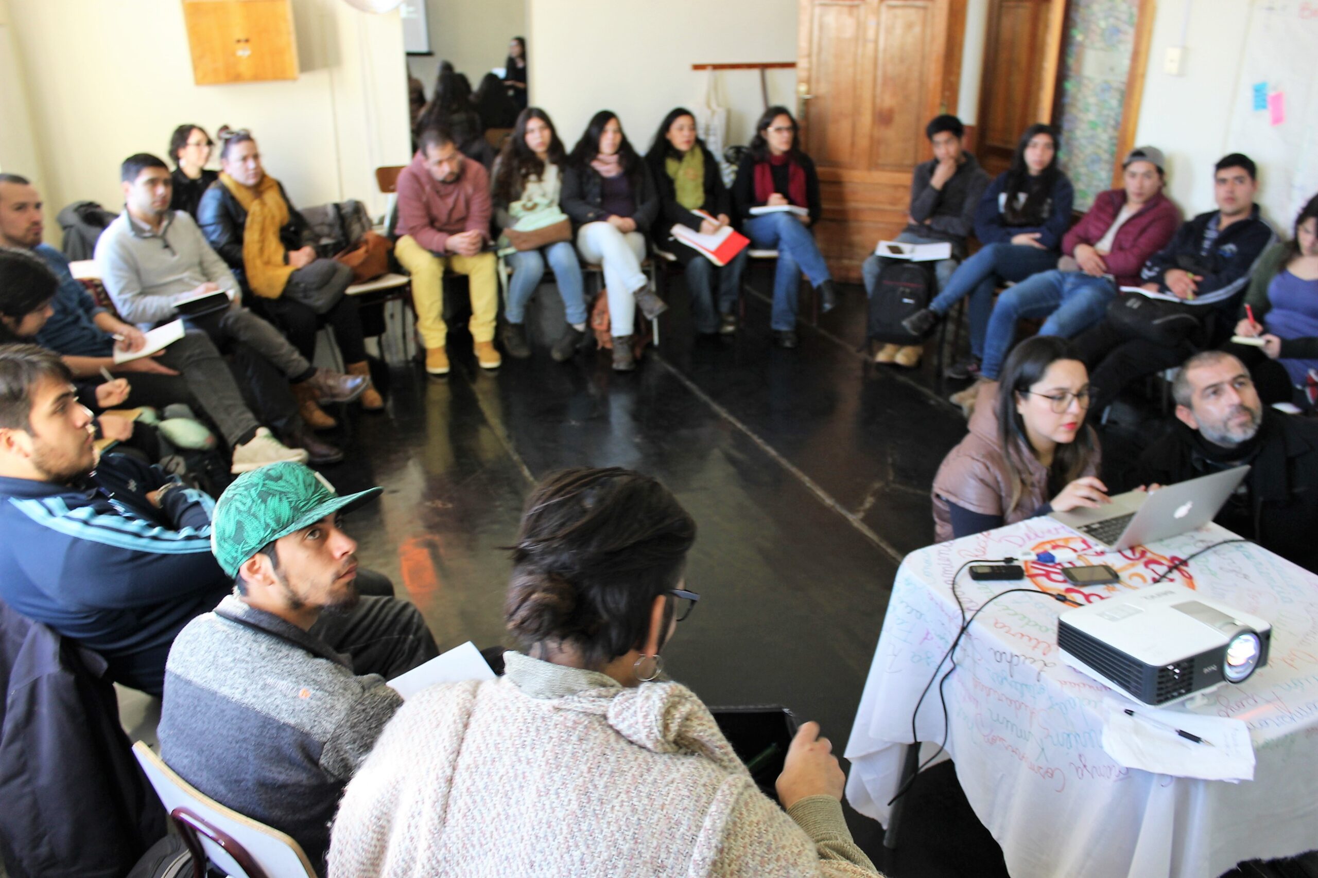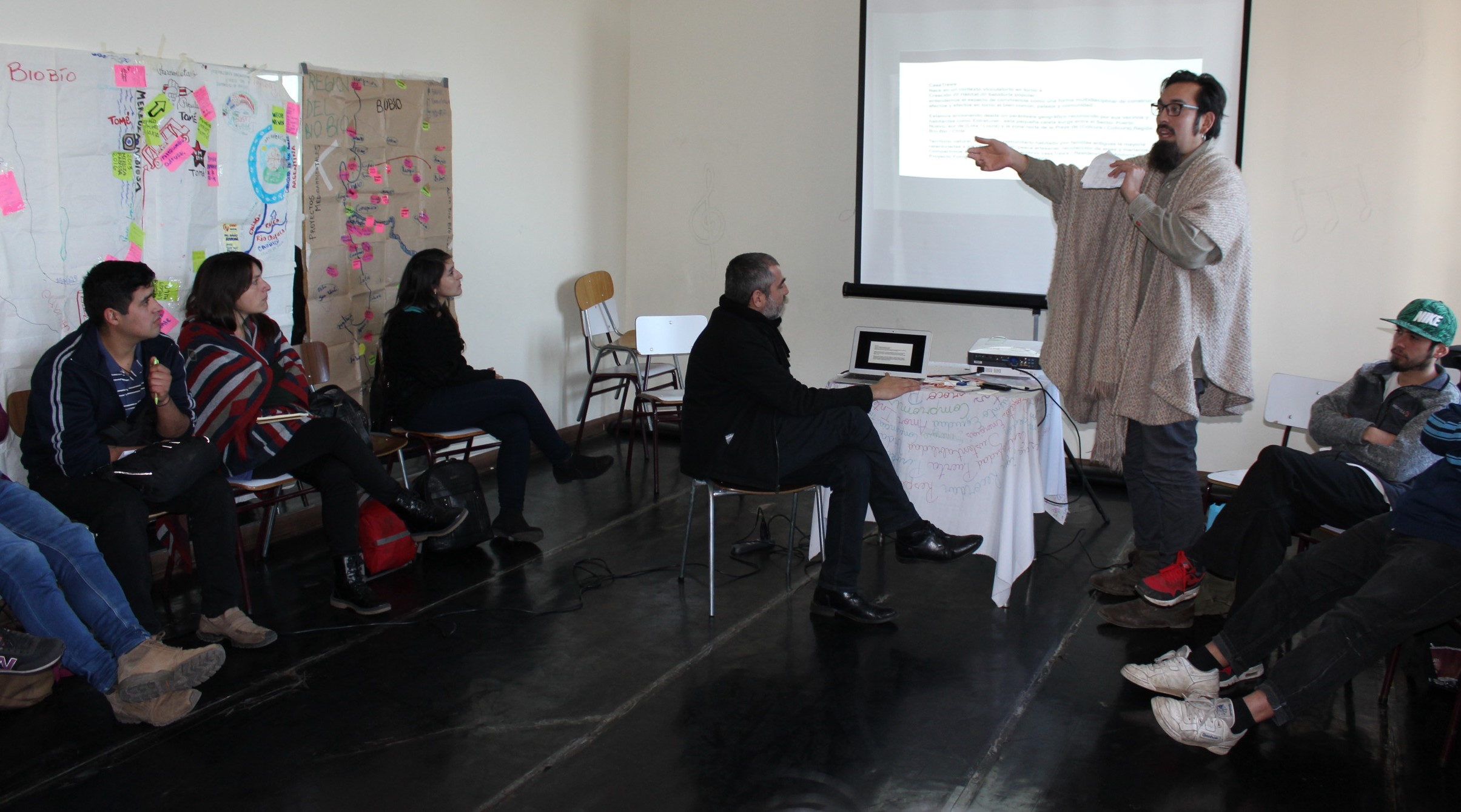 Por la tarde, los representantes de los equipos regionales escucharon las experiencias de seis organizaciones de cultura comunitaria (Grupo Cultural Víctor Jara, La EscueLota, Weche Newen, Colectivo Cultural We Newen, Microgalaxia Centro Cultural y Casa Trewa) y conocieron un poco más de la Escuela Popular de Organizaciones Culturales Comunitarias, que se desarrolló en la Región de Biobío en 2016.
