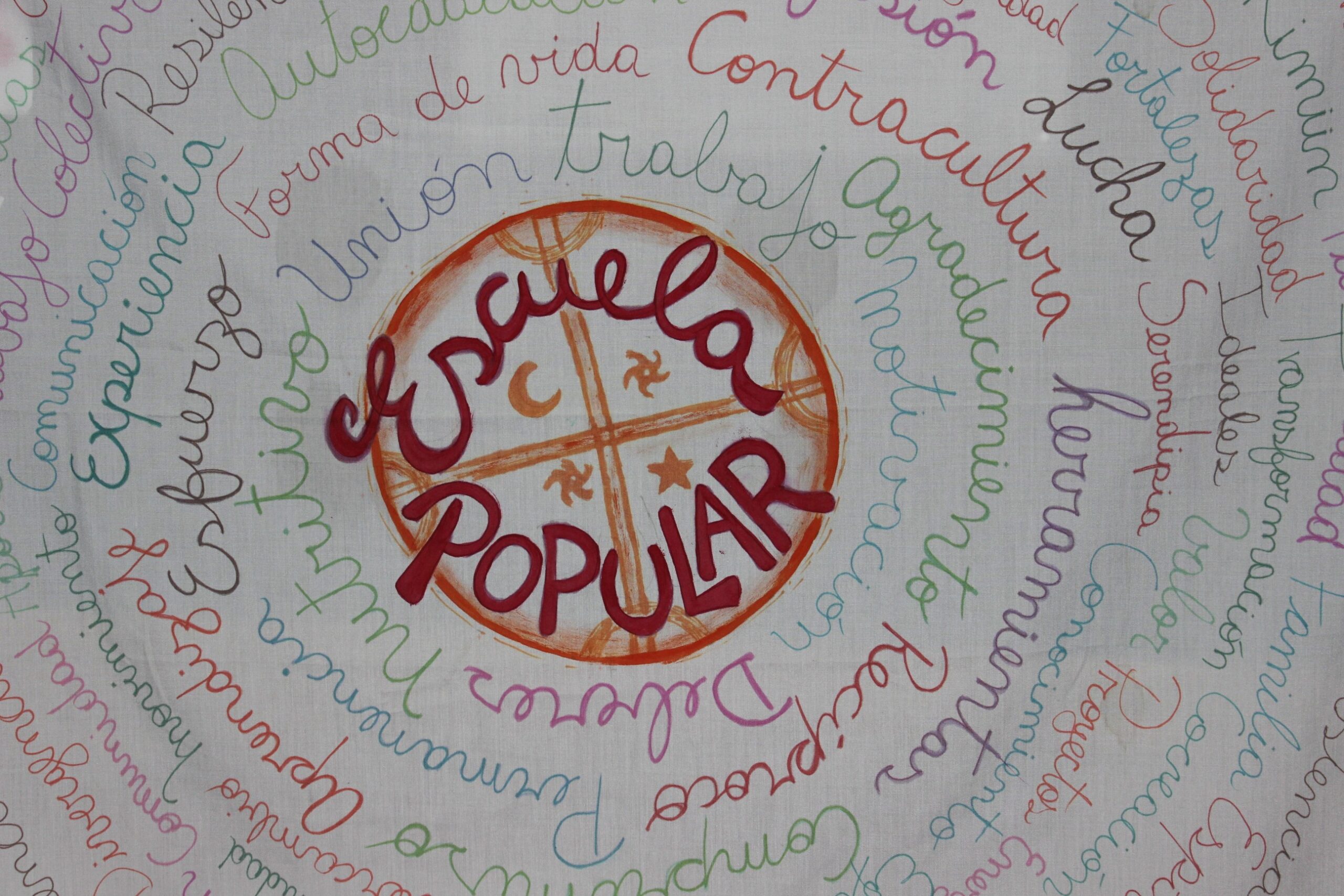 Los ochos módulos fueron así divididos: 1) Educación popular; 2 y 3) Difusión y comunicación popular; 4) Producción artística popular; 5) Cooperativismo, identidad y territorio; 6) Intercambios de modelos de gestión cultural; 7) Derechos laborales de los trabajadores de la cultura comunitaria; 8) Cosmovisión, pluralidad y medicina ancestral mapuche. Fueron las propias organizaciones quienes acordaron de manera colaborativa sobre dónde, cuándo y qué temas iban a tratar en la escuela.