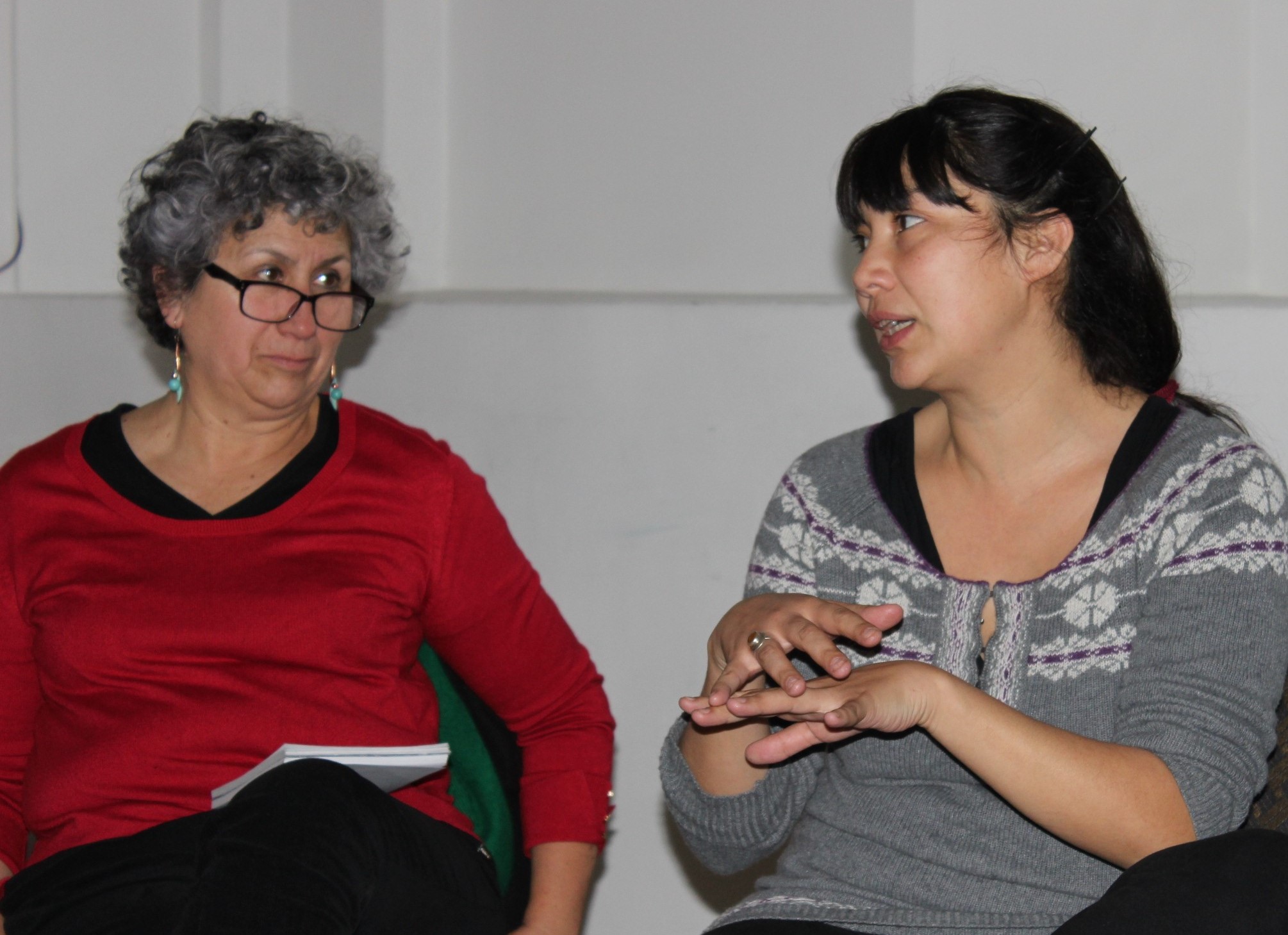 De vuelta a Santiago para una reunión de cierre con Patricia Rivera, las “viajeras” Marianela Riquelme y Teresa Albuquerque contaron un poco de la experiencia de estos días de intercambio del programa IberCultura Viva en Chile, de cómo fueron los encuentros con estas 40 personas (sin contar las más de 50 que estaban en el Encuentro de Organizaciones Culturales Comunitarias de la Región Metropolitana), de las dificultades y los aciertos que los equipos regionales han encontrado en el trabajo con las OCC.