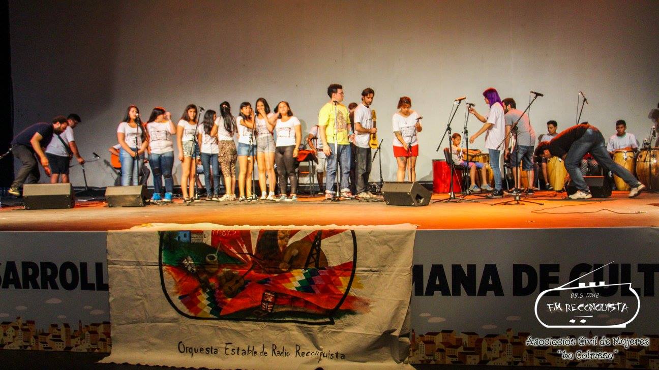 Entre eles estavam os jovens integrantes da Orquestra La Estable, que se apresentou no primeiro dia do evento, além de dirigentes juvenis, mulheres da Asociación La Colmena, professoras dos jardins comunitários e representantes de organizações sociais que realizam programas na rádio comunitária.