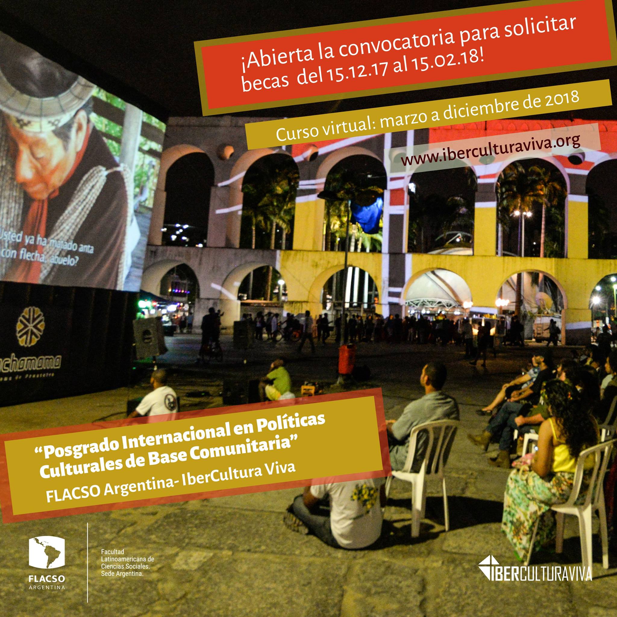 Con el objetivo de fortalecer la formación y la investigación de las políticas de cultura de base comunitaria y el concepto de “cultura viva” como política pública, el programa IberCultura Viva se sumó a la Facultad Latinoamericana de Ciencias Sociales (FLACSO), sede Argentina, para la construcción del Curso de Posgrado Internacional en Políticas Culturales de Base Comunitaria.