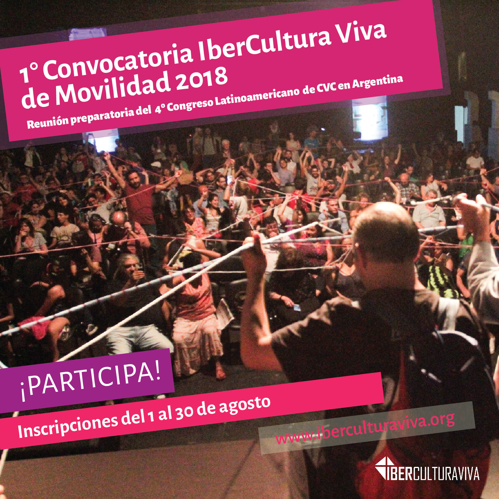 En 2018, con un monto de US$ 10 mil, la Convocatoria IberCultura Viva de Movilidad seleccionó a 9 personas de países miembros del programa para participar en las Jornadas Preparatorias del 4º Congreso Latinoamericano de CVC, realizadas en noviembre en la ciudad de Buenos Aires.