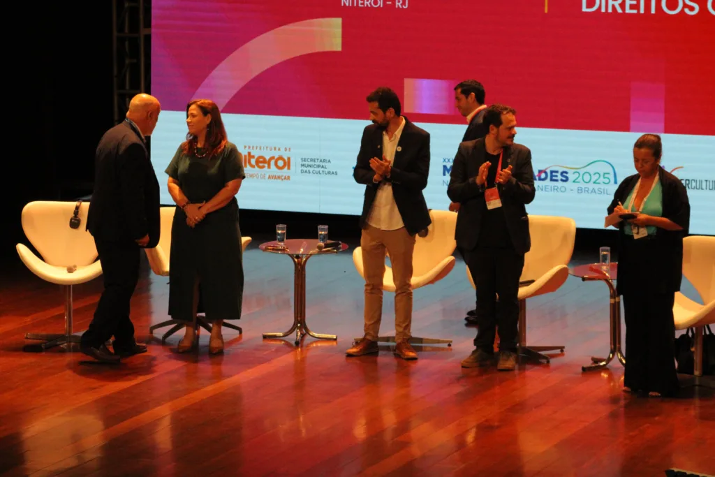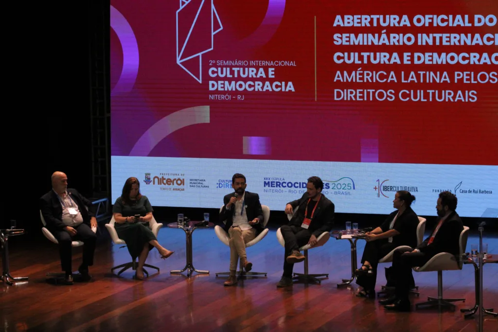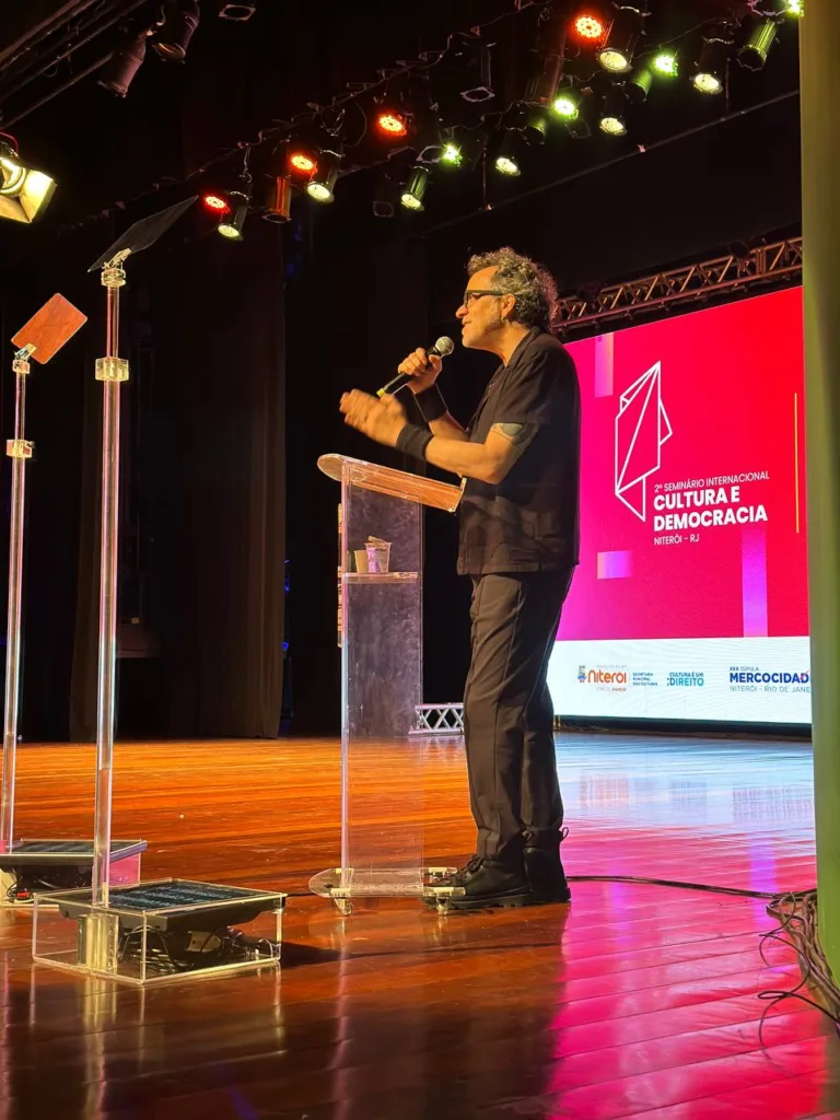 Santini afirmó que el encuentro se inscribe en un escenario de reconstrucción –del Ministerio de Cultura, de las políticas culturales y de Brasil– y destacó que Niterói, por haber sostenido estas políticas incluso en los períodos más difíciles, sigue siendo un faro para Brasil, para América Latina y para el mundo.
