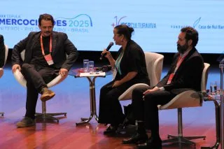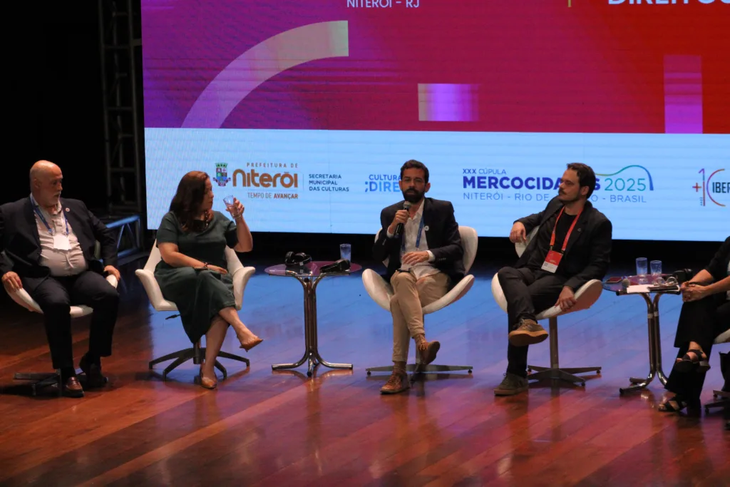 La mesa de apertura contó también con la presencia de Leonardo Giordano y Matheus Lima (secretario y subsecretario de Culturas de Niterói), Fernanda Sixel (responsable de la Oficina de Derechos y Cuidados), Jorge Rodrigues (Secretaría Técnica Permanente de Mercociudades), Joaquim Desmery (Quilmes/Argentina y vicepresidente de Gobernanza e Integración Cultural), Franco Metaza (Parlamento del Mercosur) y Mário Pragmácio (Instituto Brasileño de Derechos Culturales).