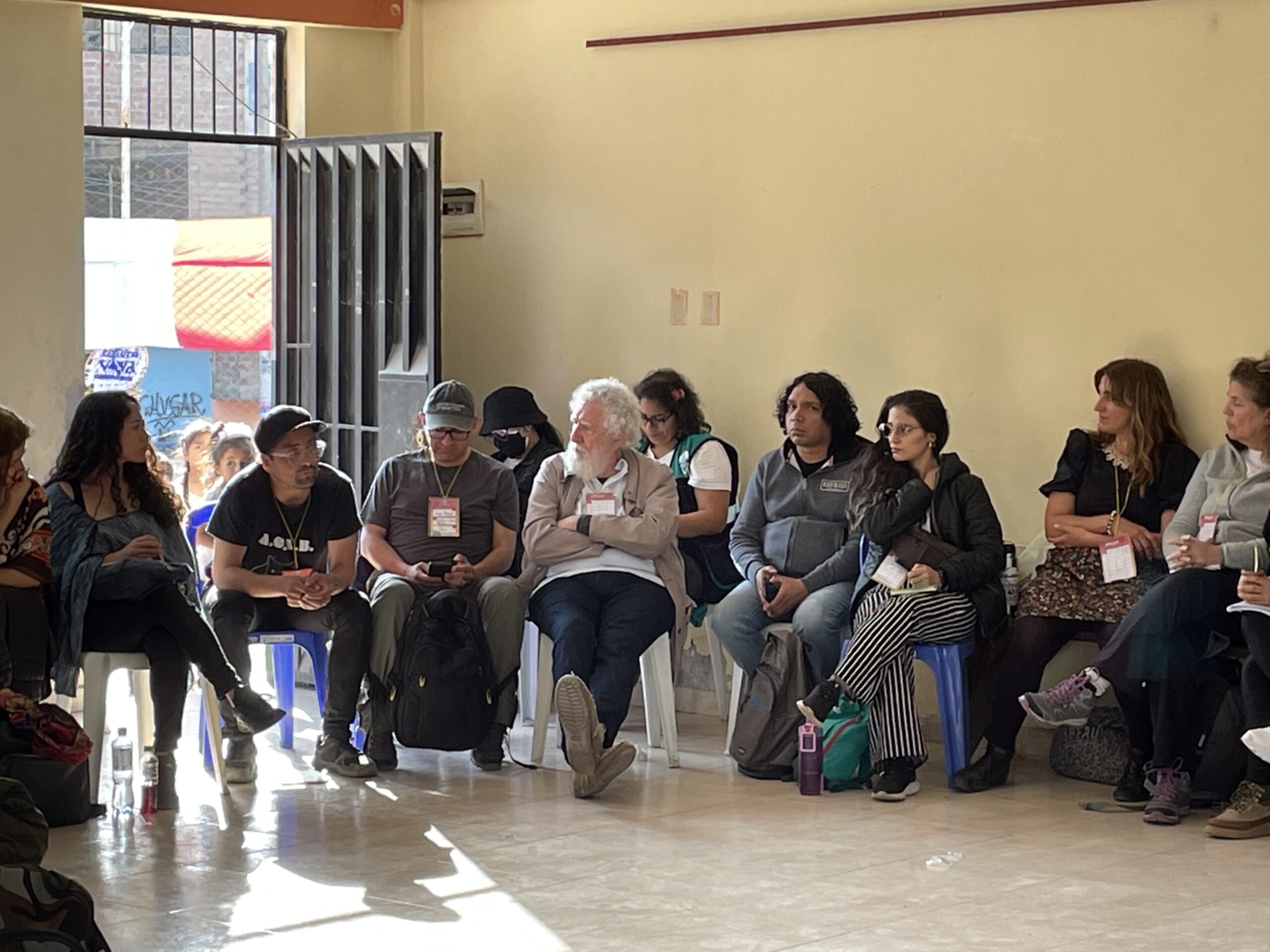 Cerca de 50 personas participaron del Círculo de la palabra “Legislación y políticas públicas”, uno de los 10 círculos que iniciaron este domingo 9 de octubre, segundo día del 5º Congreso Latinoamericano de Cultura Viva Comunitaria, en San Juan de Lurigancho (Lima, Perú). El encuentro en la Casa Comunal del Asentamiento Humano (A.H.) Santa Rosa del Sauce contó con la participación de representantes de la Red de Ciudades y Gobiernos Locales, del Grupo de Trabajo de Sistematización de IberCultura Viva y personas ganadoras de la Convocatoria de Movilidad 2022.