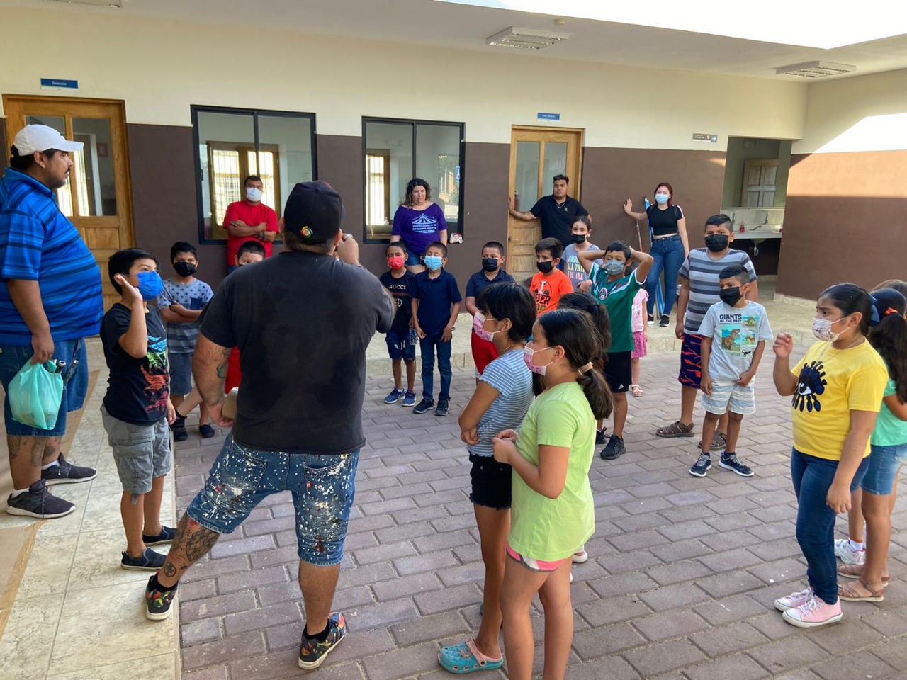 Participan también como facilitadores invitados Edgar Waldo y Osiris García, muralistas integrantes de la Red de Agentes Culturales Comunitarios de Tamaulipas, sede Ciudad Mier.