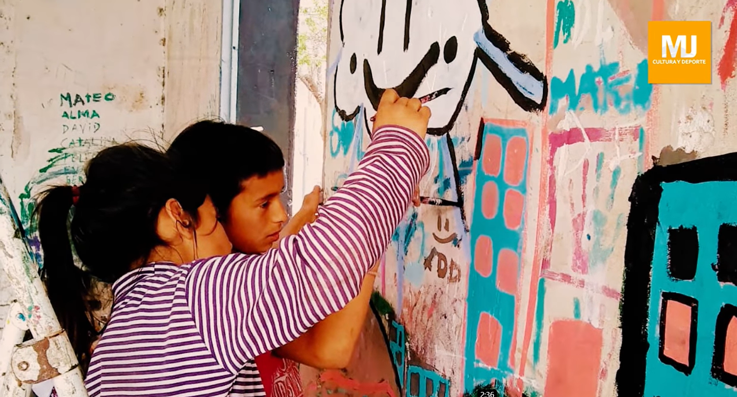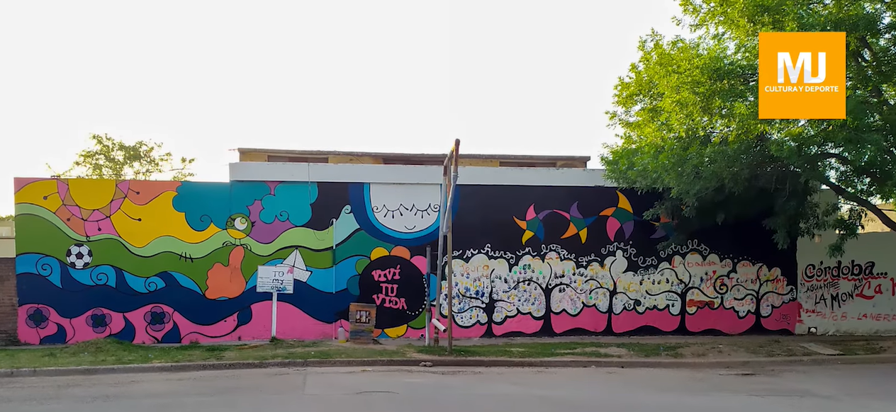 En Marcos Juárez (Córdoba, Argentina), los niños y niñas que integran el Taller de Arte Experimental del Programa Cultura Comunitaria realizaron un mural colectivo en el nuevo Espacio Cultural y Deportivo, que funciona en la Avenida Quintana con Calle Brasil.