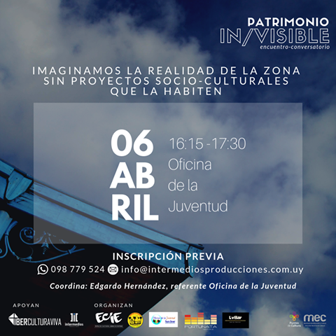 El encuentro-conversatorio “Patrimonio In/Visible: construyendo cultura viva” tendrá lugar en la ciudad de San José de Mayo (San José, Uruguay) el próximo sábado 6 de abril. Esta será la primera jornada del proyecto uruguayo seleccionado en la Convocatoria IberCultura Viva de Apoyo a Redes y Proyectos de Trabajo Colaborativo 2018.