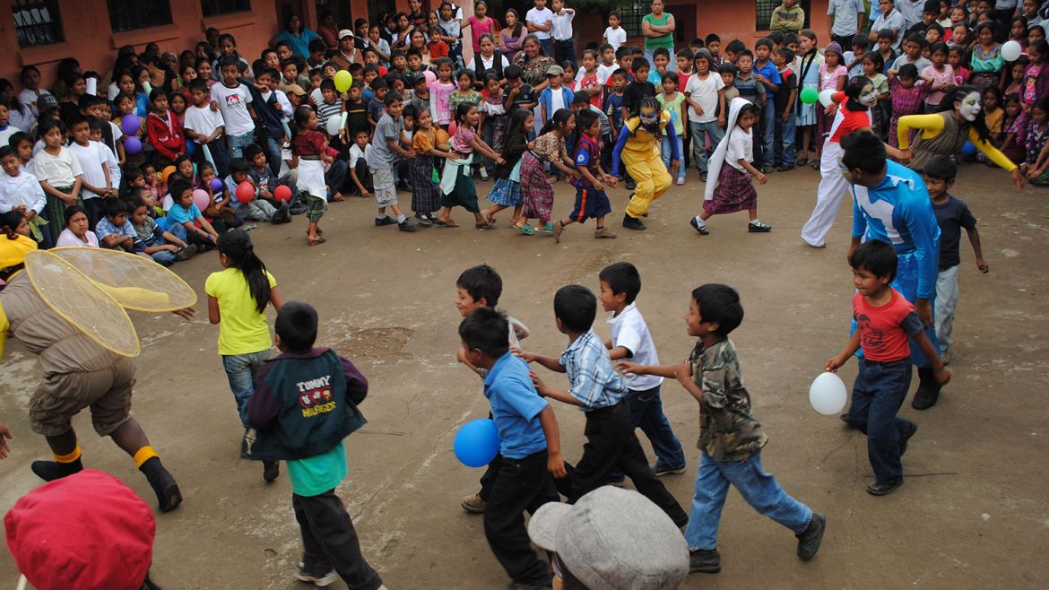 Los Acuerdos de Paz en Guatemala fueron firmados el 29 de diciembre de 1996. Caja Lúdica surgió cinco años después. “La idea nuestra no era ir contra de, sino en favor del amor, de la paz, de los derechos. En este sentido, trabajamos procesos de sensibilización artística y cultural que fueron ganando espacio”, contó. “Estos procesos son una combinación de educación popular, psicosocial, lúdica, cultura viva comunitaria… Ayuda a desatar las energías, los nodos que tenemos, que arrastramos como sociedad enferma por las dictaduras, por las guerras. Nosotros jugamos, bailamos, cantamos, hacemos poesía, muralismo, para abordar la memoria, los derechos, y sobre todo para sanar. Ha resultado muy bien.”