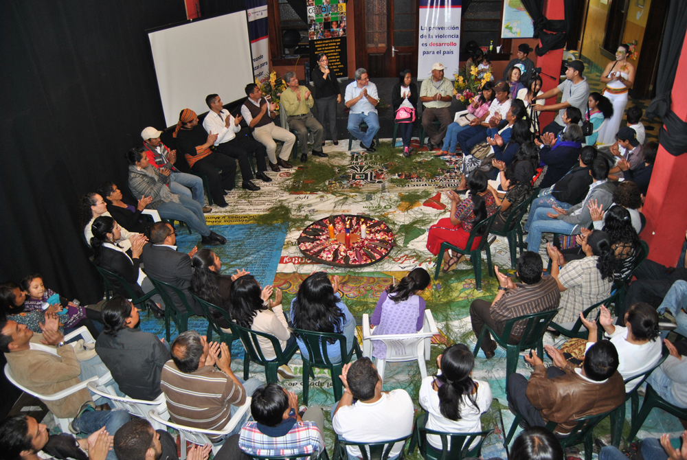 “Desarrollamos primeramente un proceso de sensibilización con las y los jóvenes, las personas de las comunidades, procesos más formativos, de cultura, memoria histórica, derechos humanos….Luego pasamos al paso siguiente, de la articulación en sí. (…) En esta metodología participativa, desarrollamos talleres, conversatorios, reuniones entre la sociedad civil y el gobierno local, para plantear la necesidad de crear una política cultural con enfoque de la comunidad, que atienda a las necesidades de la comunidad”, afirmó Pedro Ochoa, representante de Caja Lúdica, en el 2º Encuentro de Redes IberCultura Viva, realizado en Quito (Ecuador) en noviembre de 2017.
