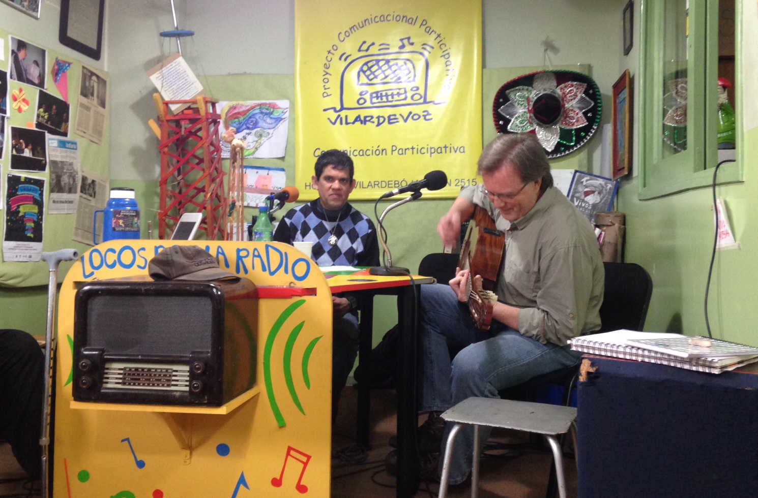 El sábado 15 de octubre, por ejemplo, fue el día de la 2ª Fiesta Antimanicomial de Vilardevoz. La fonoplatea contó con la presencia de los cantautores Abel García y Carlos Garbarino, del músico Santiago Martínez (integrante del grupo Milongas Extremas) y del diputado Gerardo Núñez, que acompaña las discusiones sobre la nueva Ley de Salud Mental que llegó al Parlamento. Como era día de fiesta, la transmisión terminó con los tambores del candombe. Los días “normales”, aunque sin batucadas, también suelen ser festivos.