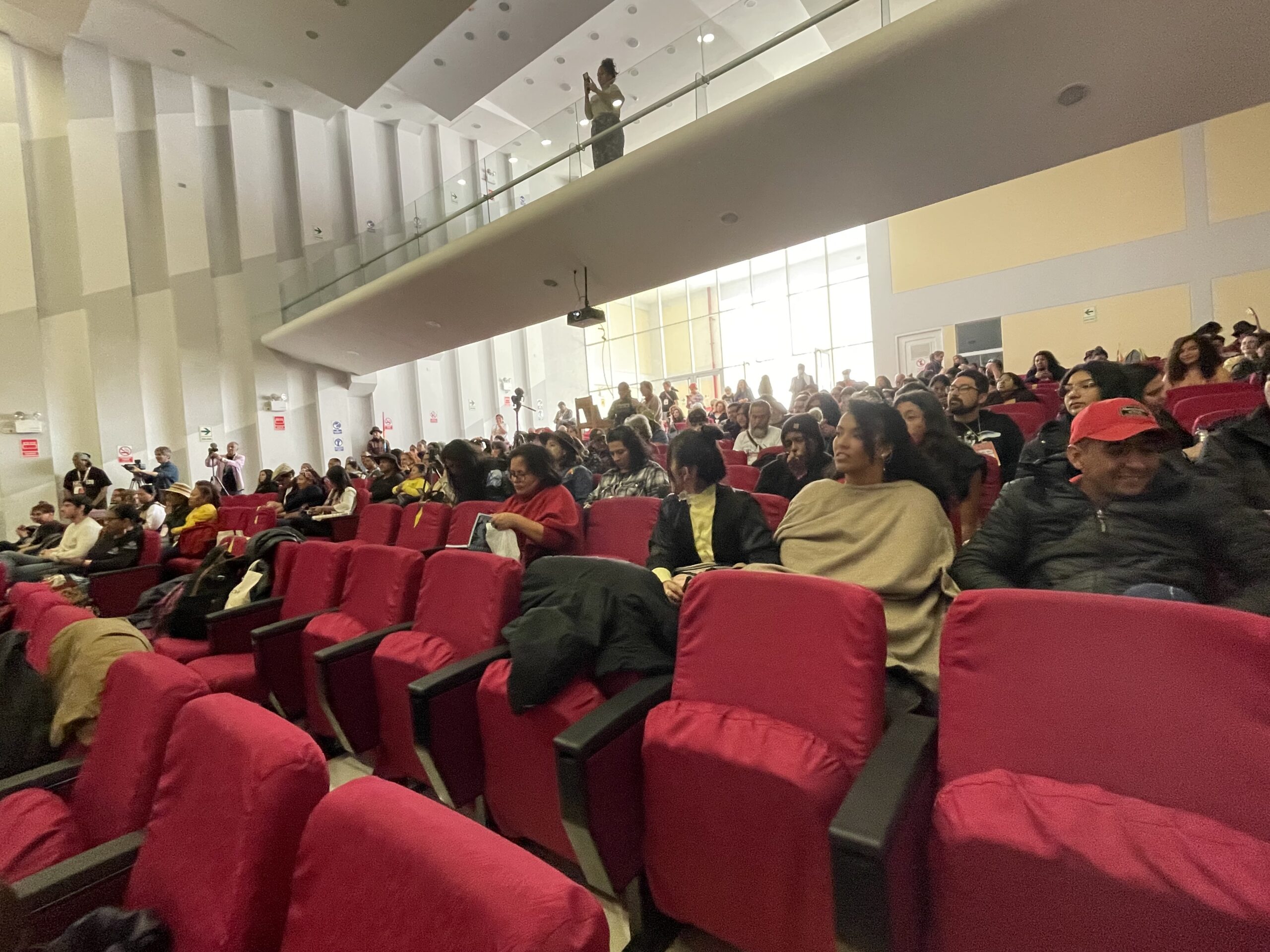 Antes del inicio de las intervenciones, la ministra de Cultura de Colombia, Patricia Ariza Flórez, saludó a todas y todos en una videollamada. “Sé que hay gente de muchos países de América Latina, que es un acontecimiento histórico cultural. Desde acá, desde este ministerio, estamos trabajando por la integración cultural de América Latina y el Caribe, una integración por la paz”, afirmó. Además de expresar su respeto por el movimiento y por quienes han promovido la cultura viva comunitaria, “que va a jugar un papel muy importante en la integración cultural”, la ministra propuso que Colombia sea la sede del 7º Congreso Latinoamericano de Cultura Viva Comunitaria, en 2026, lo que fue recibido con aplausos en el auditorio.