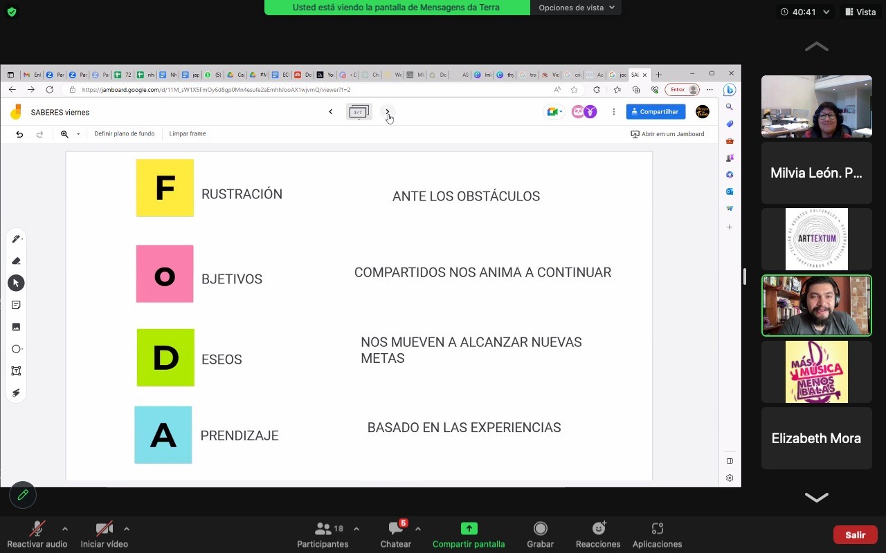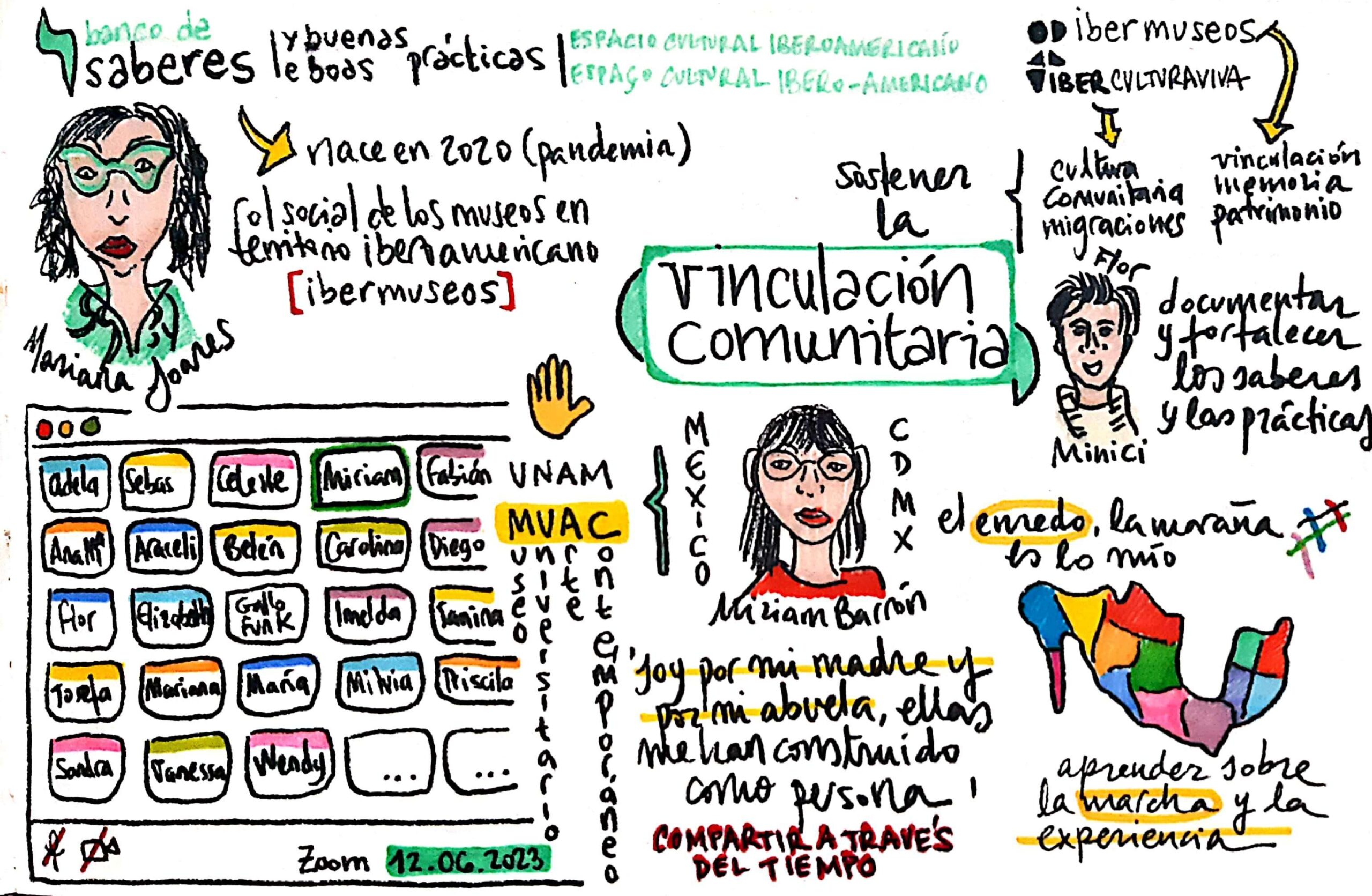 Los días 12, 14 y 16 de junio se llevó a cabo la formación “Vinculación comunitaria”, ofrecida por el Banco de Saberes y Buenas Prácticas del Espacio Cultural Iberoamericano a los y las responsables de los proyectos incorporados en la convocatoria lanzada hace un año. El curso fue impartido de modo virtual por Miriam Barrón, artista visual y gestora cultural que desde 2008 forma parte del equipo educativo del Museo Universitario Arte Contemporáneo (MUAC) en la Ciudad de México.