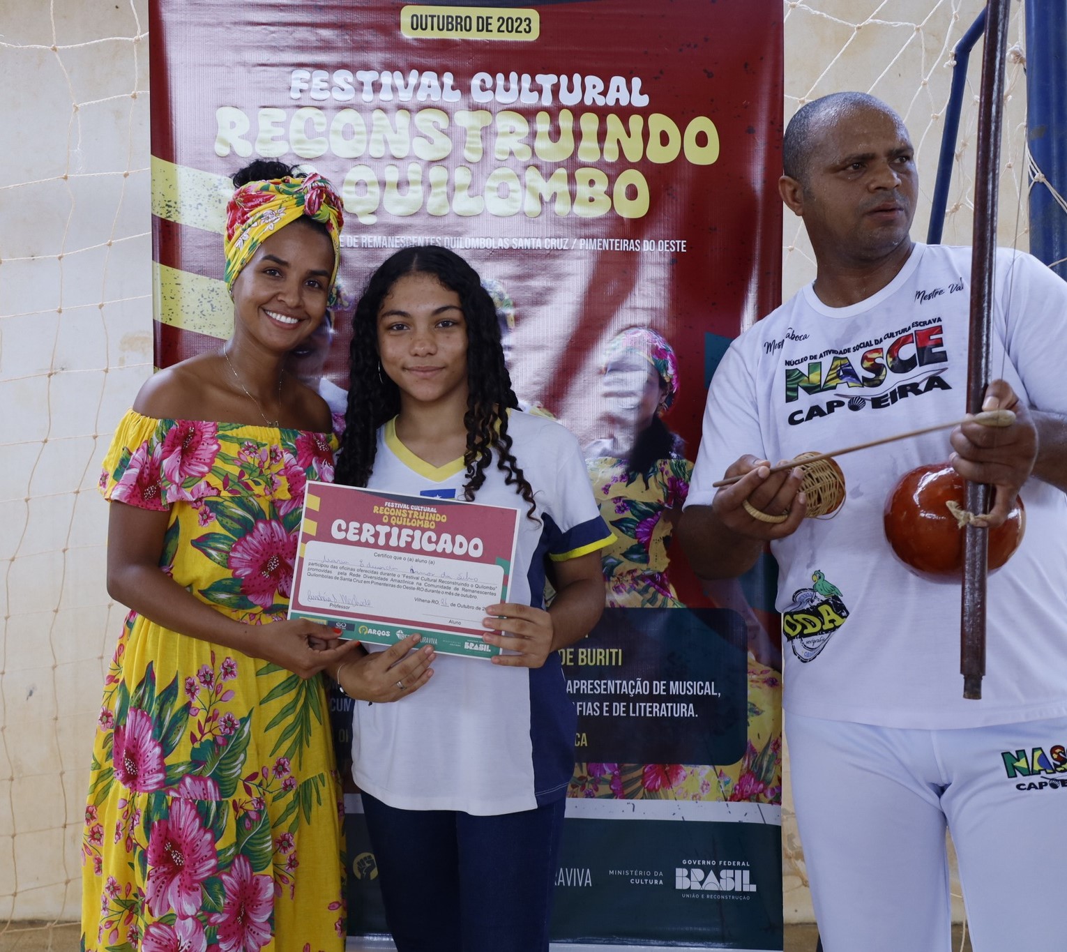 No ano passado, o Festival Cultural “Reconstruindo o Quilombo” se realizou de 23 a 27 de outubro, também com o apoio do Edital IberCultura Viva de Apoio a Redes e Projetos de Trabalho Colaborativo. Duas das principais atividades foram a oficina de dança afro-brasileira, com destaque para a capoeira, e a oficina de artesanato com palha de buriti, que é usada há gerações para criar peças artísticas e funcionais que refletem a identidade quilombola.