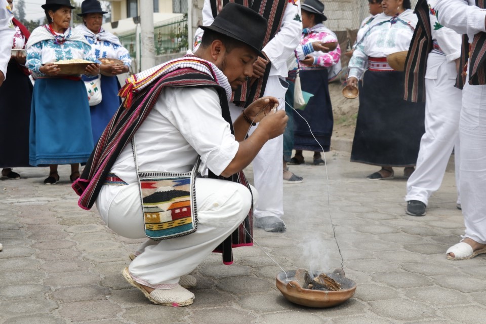 “Antigamente, todos nos reuníamos para fazer oferendas à virgem. O padre me ouviu falar kichwa e a partir daí me deixaram como líder de Mamatías e Papatíos, dizendo que deveríamos ensinar o kichwa às crianças, mas muitos não quiseram. De lá ele nos levou ao Quinche para dançar aos pés da virgenzinha, e já se passaram mais de 30 anos de todas essas lembranças”, afirmou.