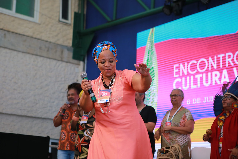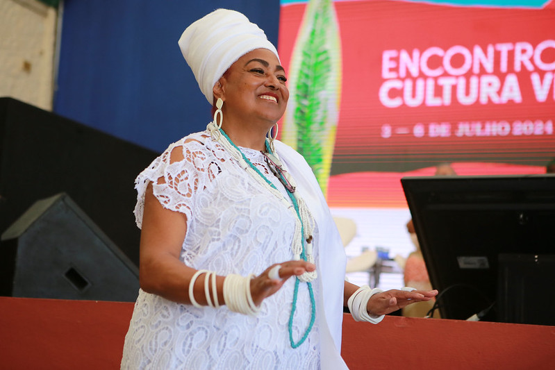 Neste evento que marca o 20º aniversário do programa Cultura Viva no Brasil (o lançamento foi em 6 de julho de 2004), ela diz que espera poder “honrar este momento de aconchego, de celebração, de encontros e reencontros”, cheia de vida e esperança. “Sejamos esperança, mão segurando na mão. Sejamos mais irmãos. Sejamos pessoas melhores, para nós, e para poder olhar para o outro e ver que a diferença é que é o gostoso”, ensina a mestra fundadora da Escola Viva Olho do Tempo, que há 20 anos trabalha com crianças e adolescentes das comunidades do Vale do Gramame, na área rural de João Pessoa (Paraíba).