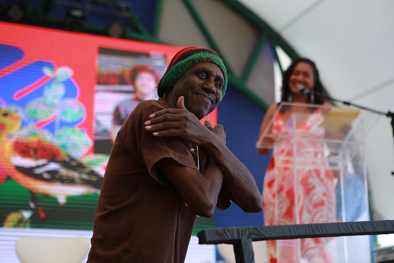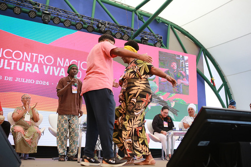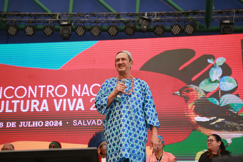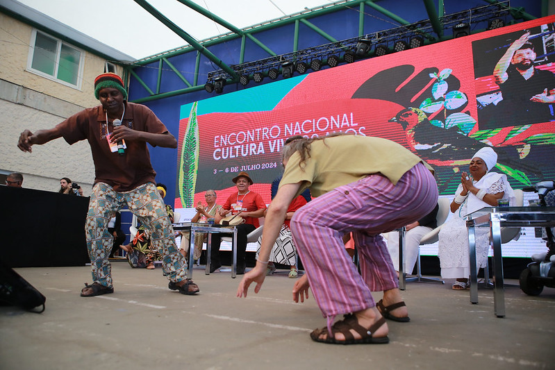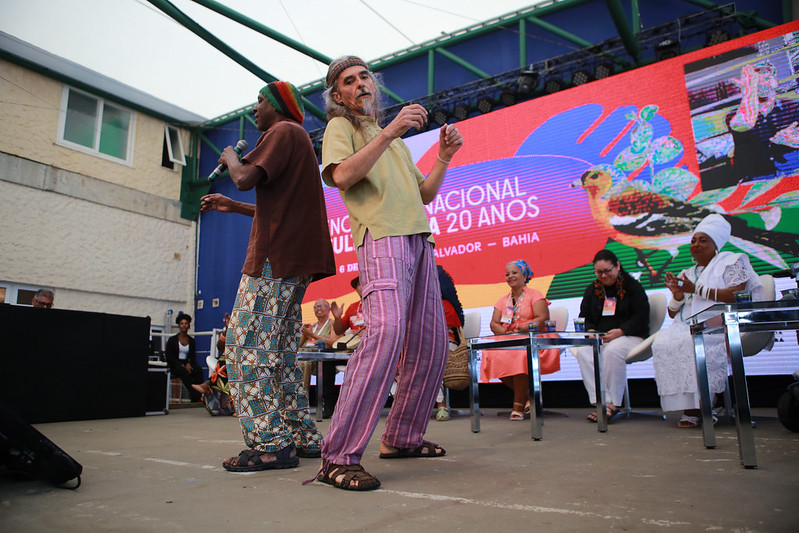 O mineiro-paulista Mestre Alcides lembrou que a celebração é pelos 20 anos de Cultura Viva, mas que este é “um processo de germinação de séculos”. De volta ao tema trazido por Mestra Doci, ele falou da importância de agir, não ficar só na discussão. “A lei dos mestres (Lei Griô) está parada. A gente tem que trazer elementos propositivos, que funcionem; senão a gente vai ficar 100 anos discutindo políticas públicas, os povos de culturas tradicionais, os povos originários. Estou com 77 anos e quero dançar mais 77 anos; para isso é preciso ter política pública, ter garantia de território”, destacou o fundador do Centro de Estudos e Aplicação da Capoeira (Ceaca), de São Paulo, depois de cantar e dançar um ponto de congado de Minas Gerais.
