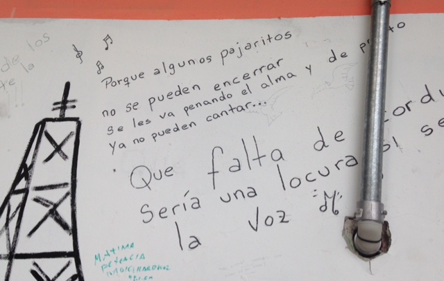 Gerardo, “o Filósofo”, gosta de ler seus poemas durante a fonoplatea. Miguel Pérez também, ainda que apresente dificuldades de fala e precise de ajuda para fazê-lo. No dia 15 de outubro, Miguel lia seus escritos e em seguida Cecilia repetia os versos dele diante do microfone: “(…) A rádio é minha companheira/ a companheira que me faz falta/ É uma boa companheira…”