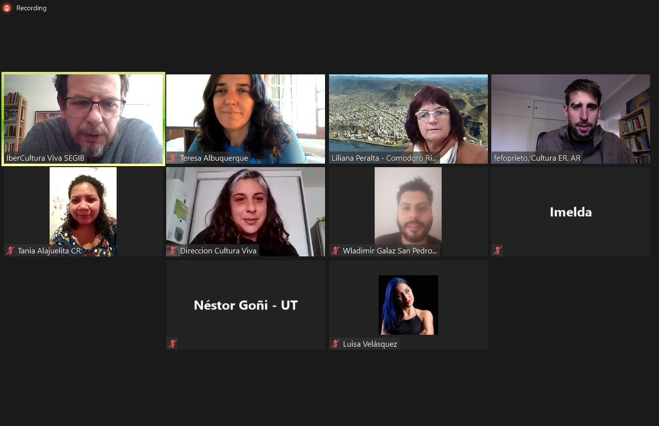 Além dessas três sessões de trabalho, a Rede IberCultura Viva de Cidades e Governos Locais esteve presente em uma dos conversatórios da programação do 2º Encontro de Cultura Viva Comunitária em Cidades e Governos Locais da América Latina. A palestra, transmitida por Facebook Live, teve como tema “A cidade e os direitos culturais” e contou com a presença de representantes dos quatro governos locais que compõem a rede: Comodoro Rivadavia (Argentina), Niterói (Brasil), Alajuelita (Costa Rica) e San Luis Potosí (México).