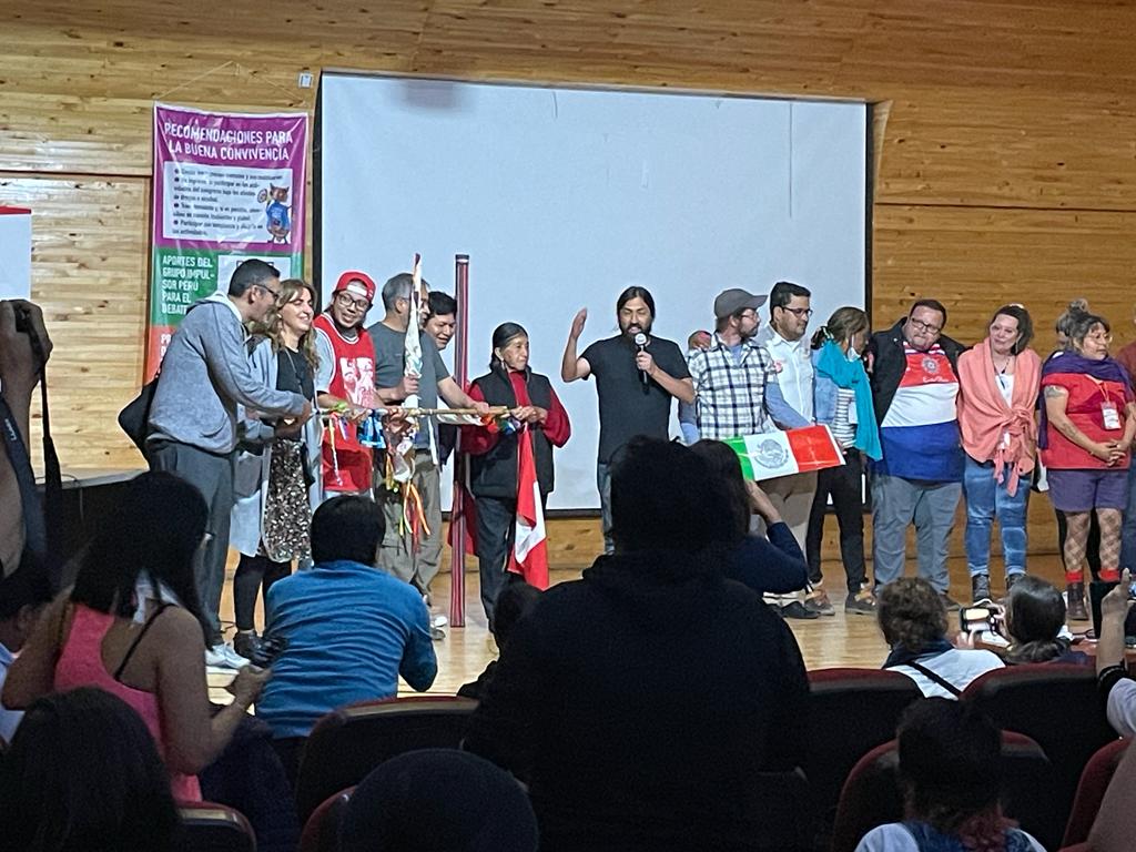 Ao passar o bastão para a delegação mexicana, o Grupo Impulsor do 5º Congresso convidou ao palco um representante de cada país que havia realizado o congresso anteriormente (Bolívia, El Salvador, Equador e Argentina) para encerrar o encontro em clima festivo (“Viva! Viva a cultura viva para a América Latina!), com a alegria que é habitual neste movimento continental que completa 10 anos em 2023.