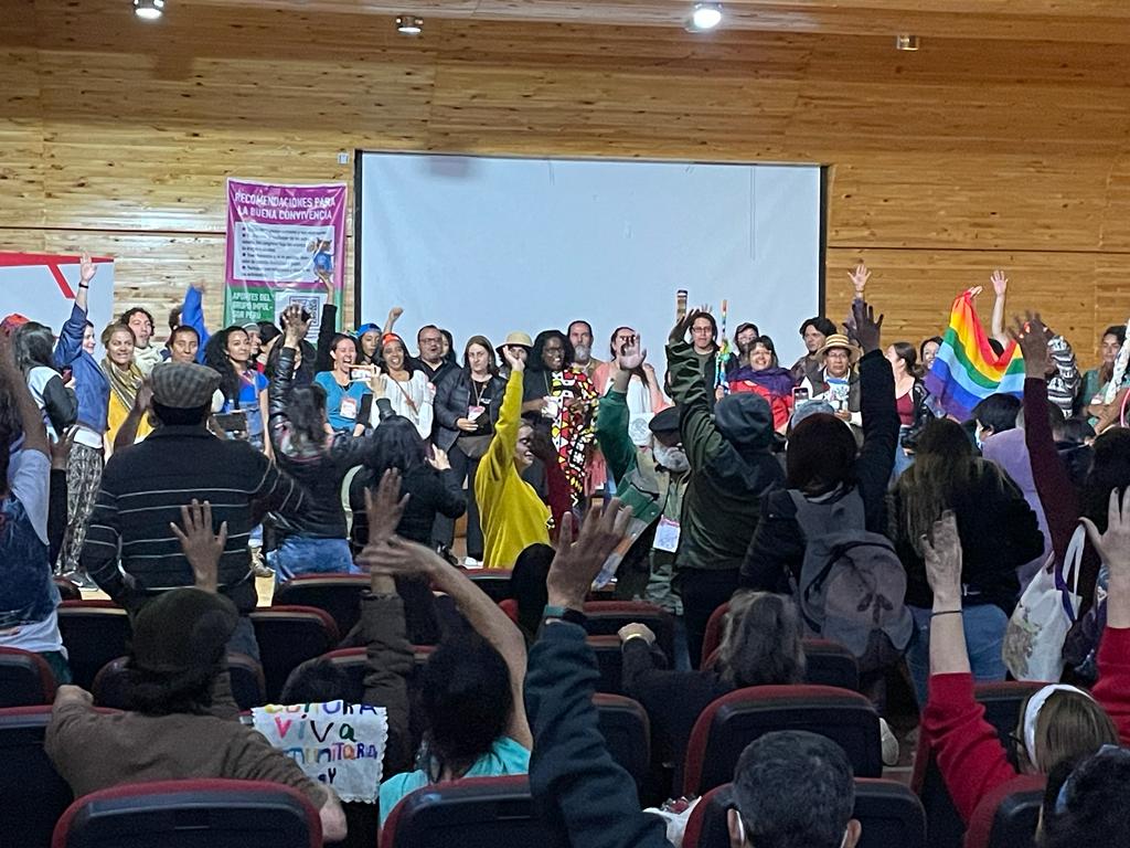 Após oito dias de debates, feiras, rituais, cortejos, apresentações artísticas, visitas a comunidades e sítios arqueológicos, o 5º Congresso Latino-americano de Cultura Comunitária Viva terminou neste sábado, 15 de outubro, com uma assembleia no Auditório Municipal de Huancayo, onde foram apresentadas as principais conclusões dos 10 círculos da palavra e as delegações do México e da Colômbia anunciaram que sediarão as próximas edições: México em 2024, Colômbia em 2026.